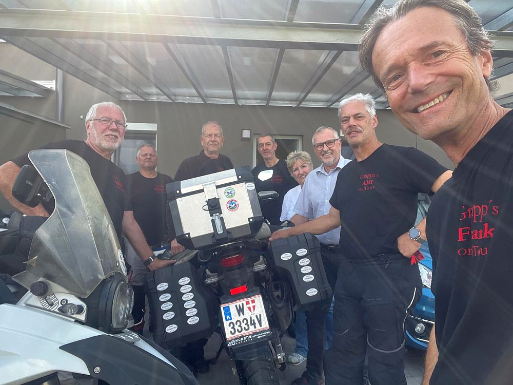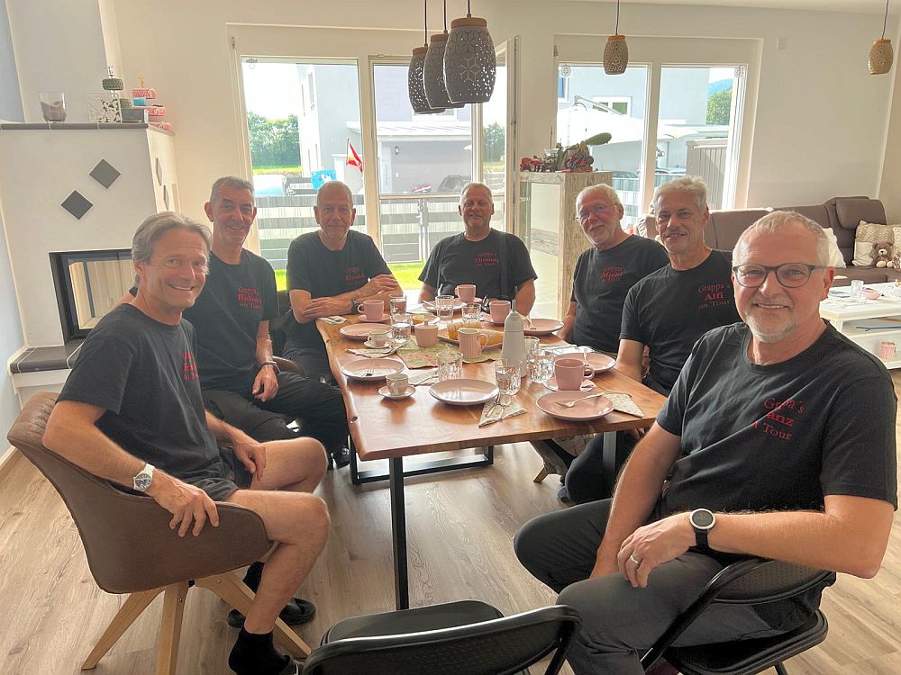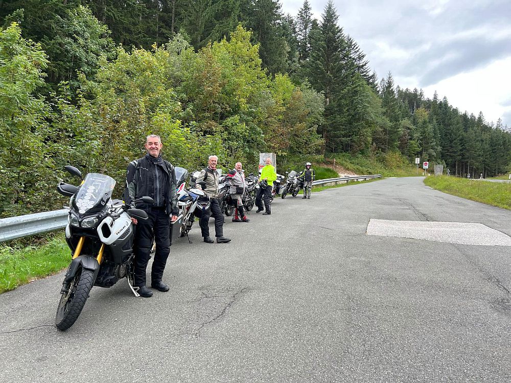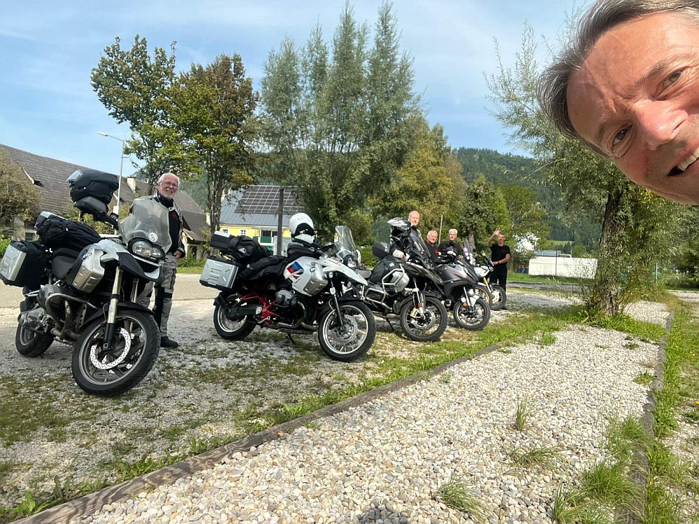 Der letzte Tag. Durch das Ennstal nach Trieben. Die Straße nach Kaiserau ist gesperrt also über Umwege nach Admont. Gesäuse, Palfau und Wildalpen sind schon bekannte Strecken. Kurz vor Gußwerk noch eine gemeinsame Mittagspause. Zum Abschluß führt uns Ewald noch über den Seebergsattel und Pogusch zum Franz, unseren 7. Grappa, nach Mürzhofen. Der hat heute Geburtstag! Dafür hat Andrea zwei sensationelle Kuchen gebacken. Kardinalschnitte und Biskuitroulade. Wir haben nichts übrig gelassen. Von hier fahren wir alle noch gemeinsam über den Semmering, danach trennen sich unsere Wege.