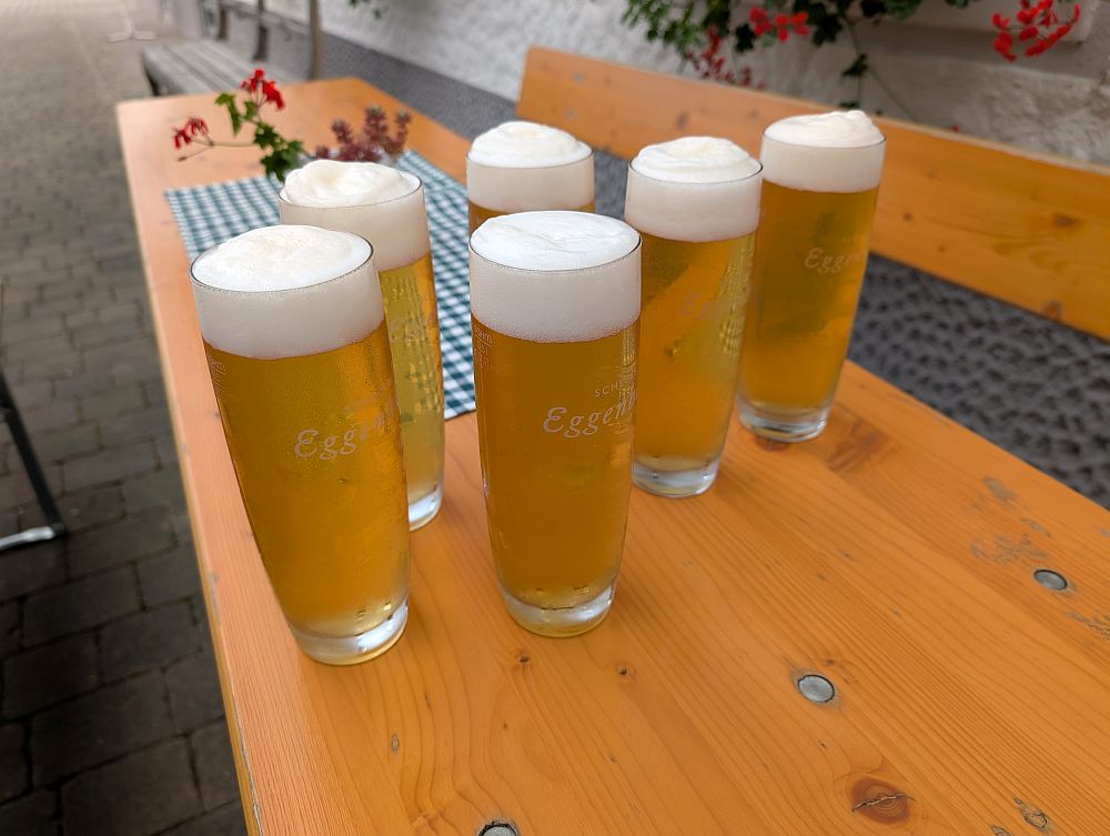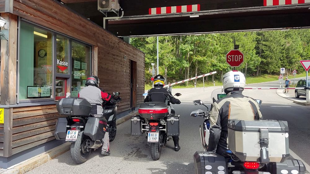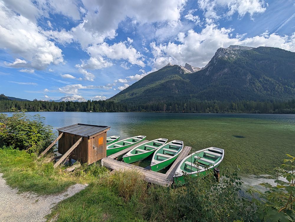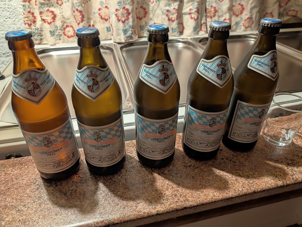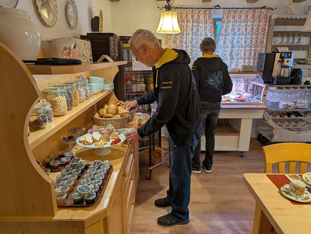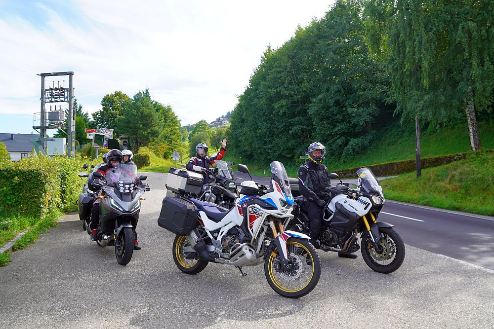 Der Tag der Seen. Traunsee, Attersee, Mondsee, Wolfgangsee. Über die Grenze nach Bayern und hoch auf die Rossfeld-Panoramastraße. Von hier sieht man auf der einen Seite nach Bayern und auf der anderen nach Salzburg. Ewald, Frank und Robert waren 2018 anlässlich der BMW Hüttentour schon mal hier. Mittags auf 1500m beim Berggasthof Ahornkaser eine Weisswurst, oder was anderes. Den Nachmittagskaffee trinken wir im GH Seeklause am Hintersee. Über Reit im Winkl, Walchsee, Thiersee statt über die Tatzelwurmstrasse (die ist in der Richtung aus der wir kommen für Motorräder gesperrt) kommen wir nach Bayrischzell. Die Hotelsuche ist hier schwierig. Erst im dritten Hotel werden wir fündig. Zum Abschluß des Tages noch ein Bier aus dem Hotelkühlschrank.