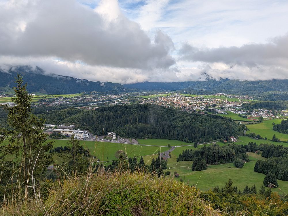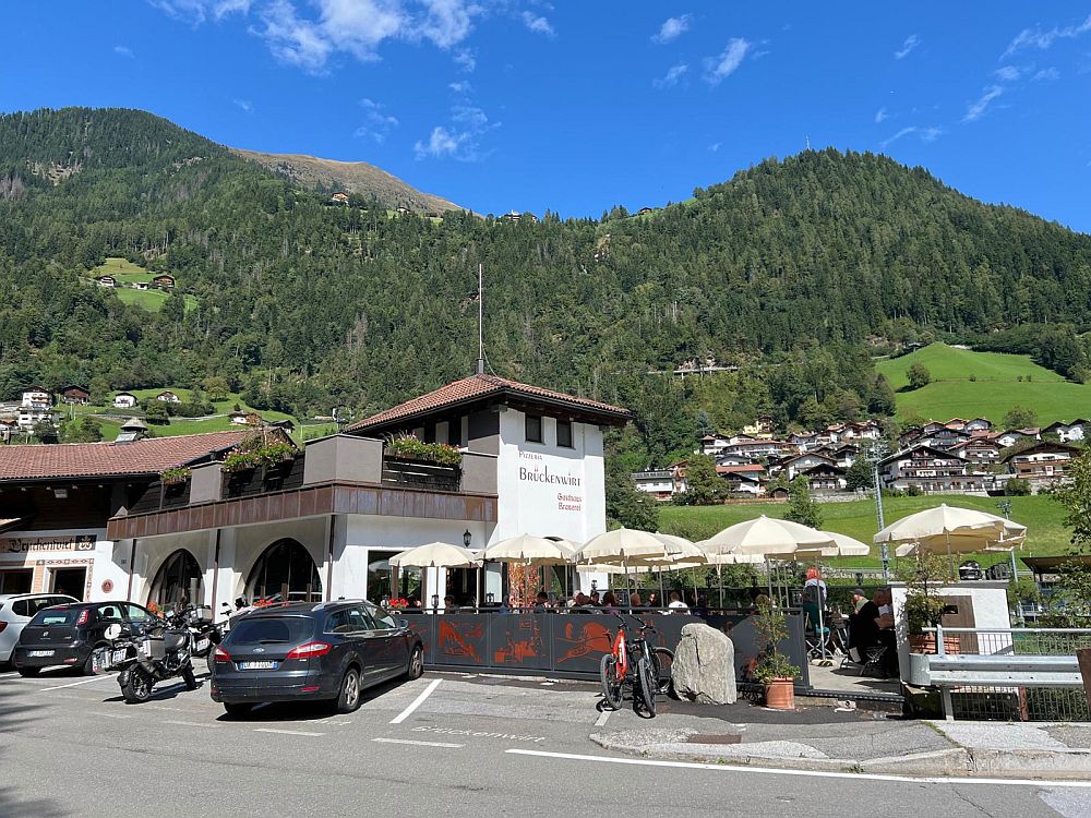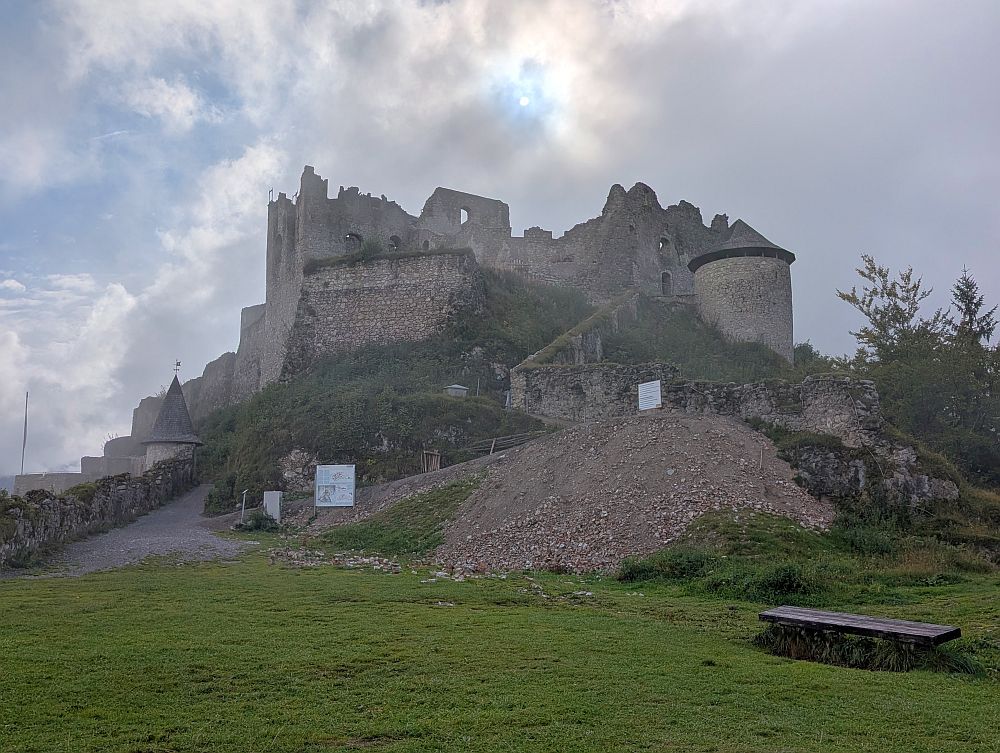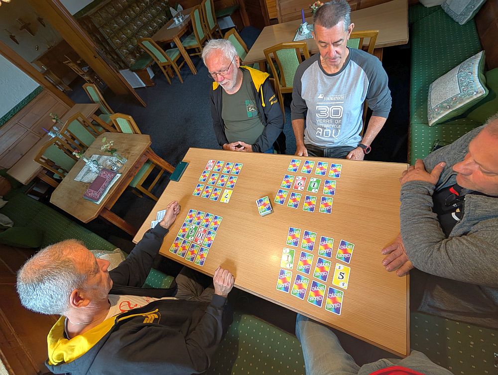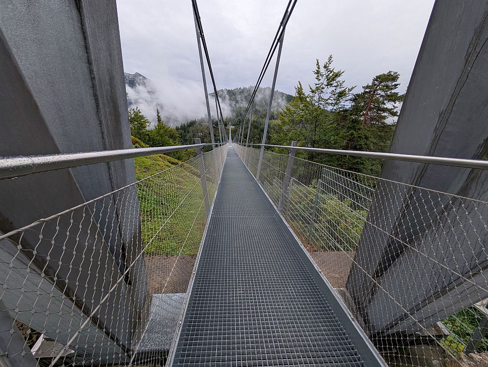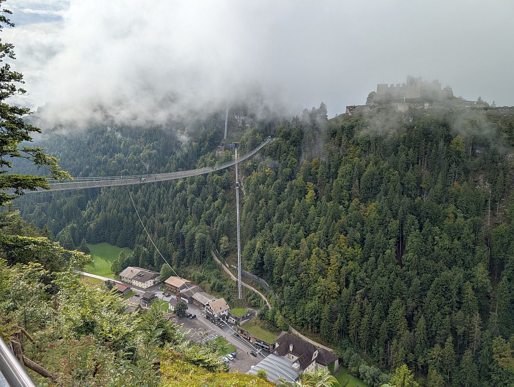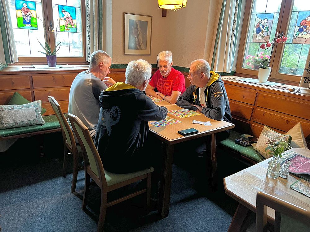 Es regnet! Also fällt die Arlberg-Runde heute ins Wasser. Ewald hat Spielkarten mit. Damit können wir uns ein bisschen die Zeit vertreiben. Zu Mittag lassen wir uns Pizza liefern, da hier im Hotel heute Ruhetag ist. So wie gestern hört der Regen auch heute Nachmittags wieder auf. Diesmal fahren Robert und Alfi mit dem Taxi zur Burgruine und Hängebrücke.