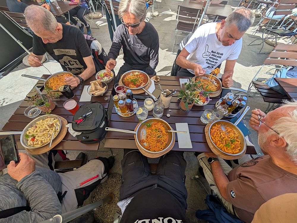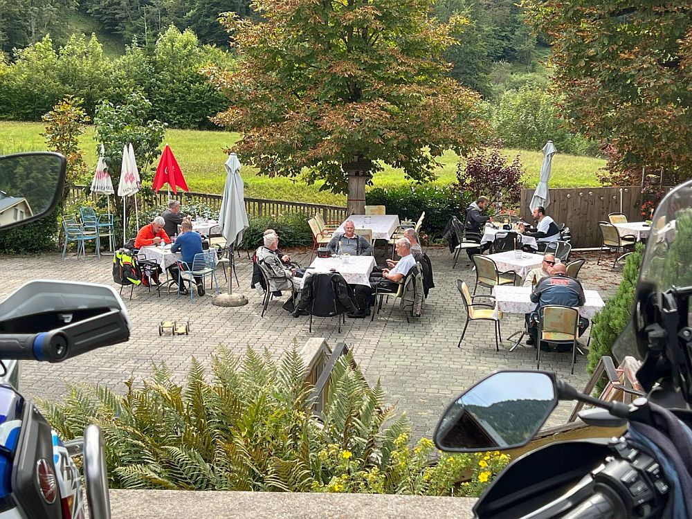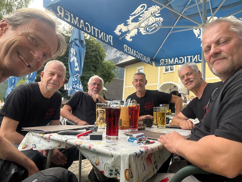 Treffpunkt bei der ÖMV-Tankstelle in Alland. Alle sind überpünktlich da damit sich noch ein Kaffee ausgeht. Abfahrt dann wie geplant um 10 Uhr. Das Wetter passt und wir fahren entspannt über St. Corona/Schöpfl, Hainfeld, Rotheau, Pielachtal, Erlauftalstraße, Lunz/See bis Palfau wo wir dann unsere Mittagspause machen. Frank und Ewald nutzen den vorhandenen Tischtennistisch für ein kleines Spielchen zur Verdauung.