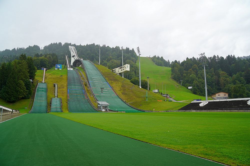Von Bayern geht es heute wieder nach Österreich. Es sollte heute eine kürzere Etappe ein, da am Nachmittag Besichtigungen in Reutte geplant sind. Wieder an einigen Seen vorbei. Alpenstraße Schliersee, Tegernsee, Sylvensteinsee, Wildflusslandschaft Isartal, Kesselbergstraße, Kochelsee. Und kaum bei der Sprungschanze in Garmisch-Partenkirchen angekommen, beginnt es so richtig zu regnen. Also kurz ein paar Fotos und ins Regengewand. Von hier dann direkt nach Reutte. Also fast direkt. Roberts Navi verhilft uns zu ein paar Extrarunden bei Garmisch, bevor wir dann endlich den richtigen Weg finden. Am späteren Nachmittag hört der Regen in Reutte auf und Ewald, Frank und Michi machen sich auf zur Besichtigung der Burgenwelt Ehrenberg und der Hängebrücke Highline179.